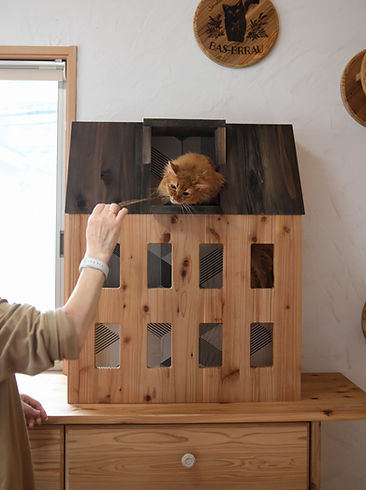 ネコの街カドでは、お部屋に似合う自然木の選定から、動線を考慮したハウスやウォークの設置まで、全ての工程を丁寧に行うい、お客様のご満足につながるキャットハウス 作りを目指しております。